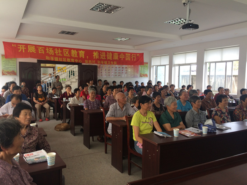 实现全面小康,首先是身体的健康。10月9日,和孚镇社区教育中心在和孚镇卫生院的配合下于新胜村开展以健康教育为主题的“百场社区教育”活动。新胜村有110名村民参加了此次活动。
