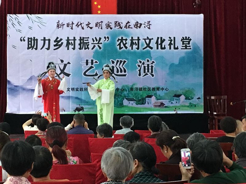 近日,由南浔�新时代文明实践所,南浔�文体中心,南浔�社区教育中心主办的“助力乡村振兴、农村文化礼堂文艺巡演”在计家兜、潘港桥、伍林等村文化礼堂隆重举行。一支由本镇戏曲爱好者和老年大学学员自发组成的演出队伍,通过评弹、越剧,沪剧,�a剧,京剧,舞蹈、独唱、萨克斯等群众喜闻乐见的形式传递“乡风文明”元素。巡演节目异彩纷呈, “一心为民好书记”、“党的叮咛”、 “十八相送”等精彩的表演也赢得了场下阵阵掌声。