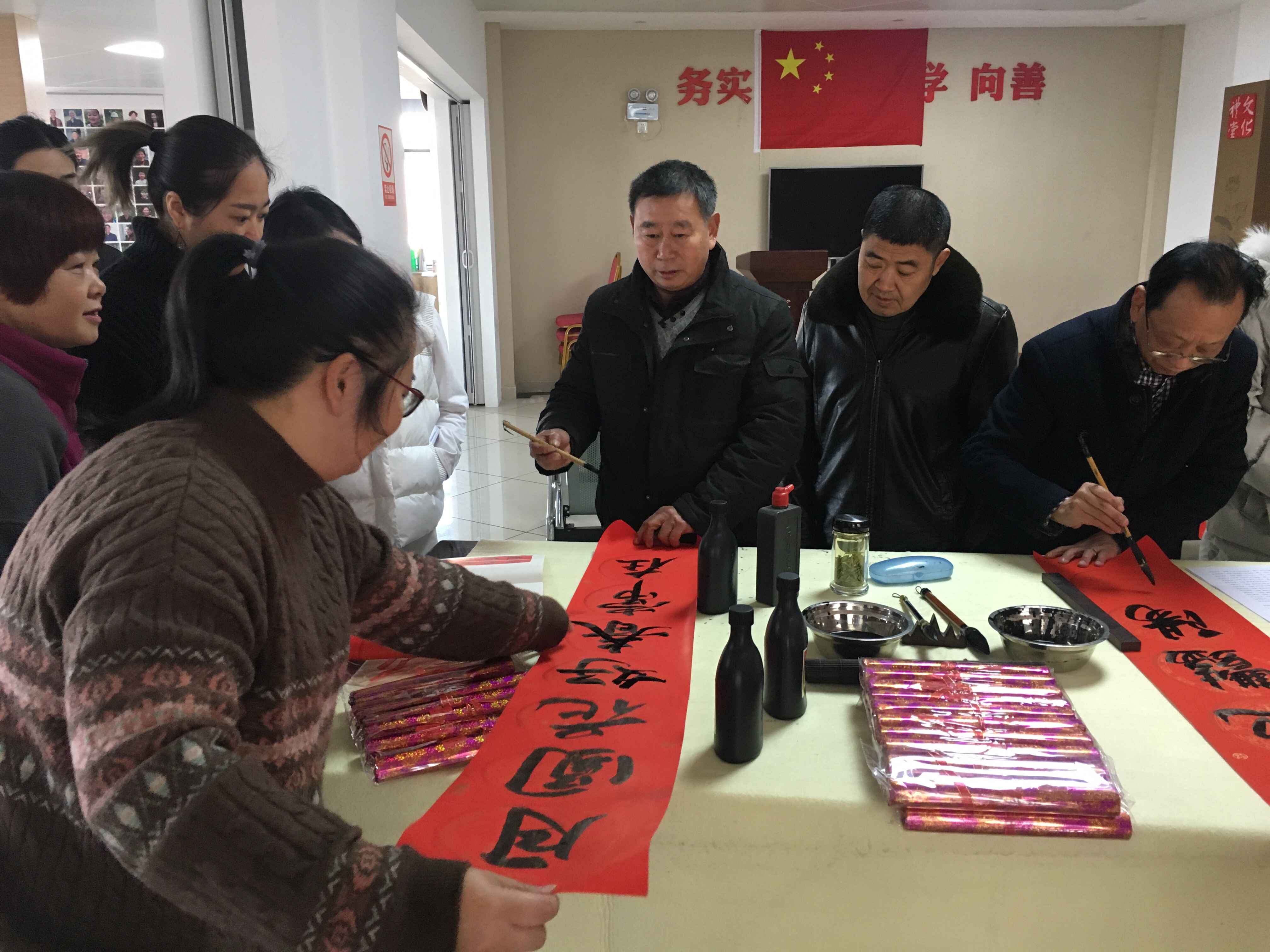 本次活动道场乡社区教育中心特别邀请了湖州老年书画协会会员及道场乡老年大学书法班的学员们参加。大家现场挥毫洒墨,一个个喜庆的“福”字跃然纸上,一副副饱含祝福的春联一挥而就。“福”字墨汁未干,即被围观的群众领走。