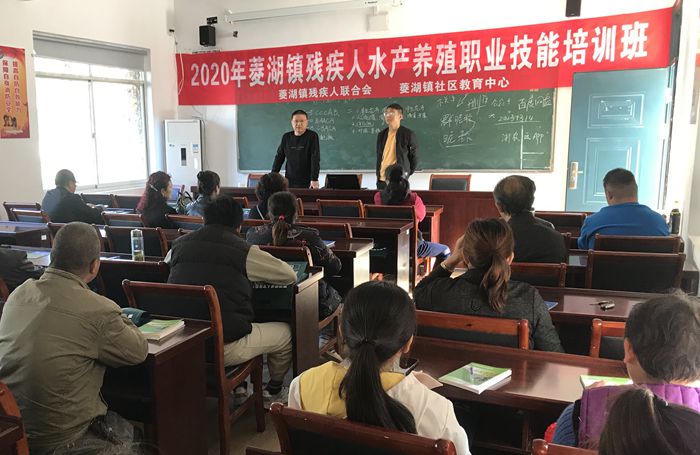 为贯切落实习近平总书记有关残疾人精准扶贫工作重要指示精神,扎实做好新时期农村残疾人精准扶贫工作。11月12日上午,菱湖镇社区教育中心与菱湖镇残疾人联合会共同举办了2020年菱湖镇残疾人水产养殖职业技能培训班。授课前,刘森祥校长向前来参加培训班的残疾人学员们提出了两点希望:一是要沉下心来认真学,充分利用培训课程不长的时间认认真真地听老师讲解,务求学有所得;二是要学以致用,希望大家经过培训学习后,能结合自己的实际情况,积极主动地开展水产养殖副业,坚定劳动致富、生产脱贫的信心,务求大家能增产增收,早日实现脱贫奔小康的目标。参加此次水产养殖职业技术培训的学员来自各行政村、社区的残疾人朋友,共计33人。他们中有的已经在搞水产养殖业,有的则准备从事水产养殖业,残疾人水产养殖职业技能培训班的顺利开班得到了菱湖镇残联的大力支持。