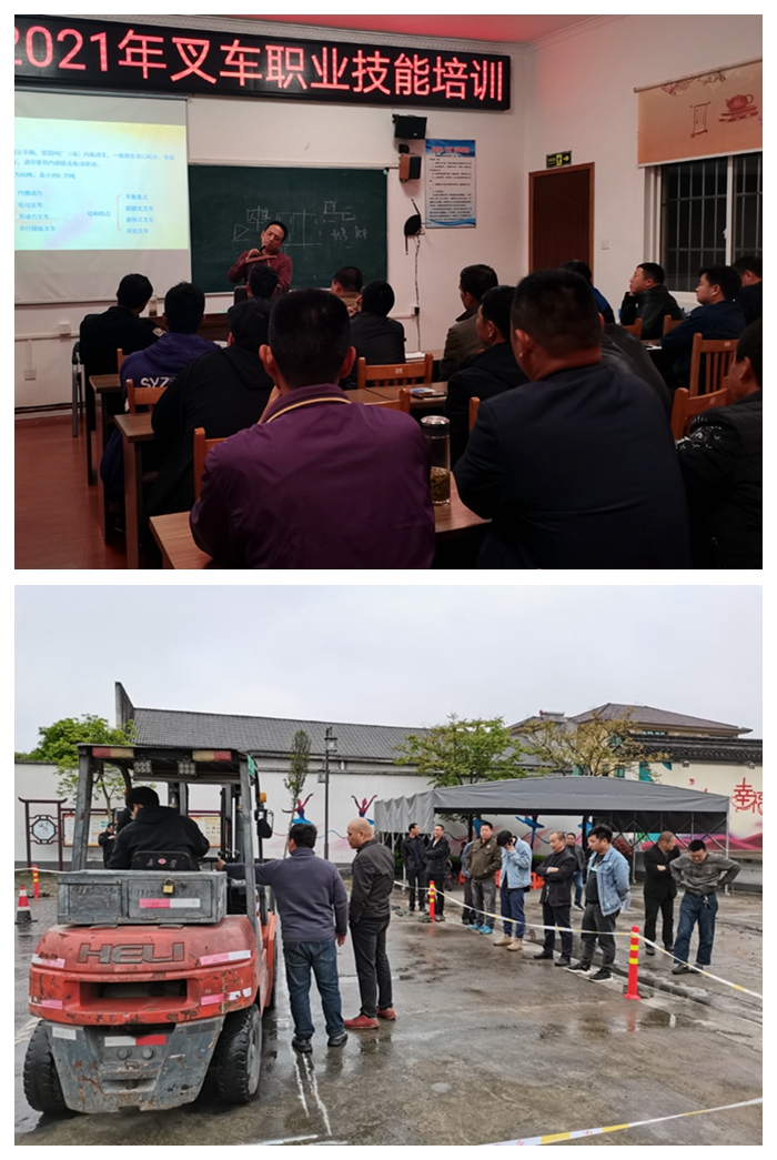 培训分成理论和实践操作两部分,培训内容主要包括:厂内交通规章制度、易发作业安全事故、设备的维护保养及违章操作演示隐患辨识等。在实践操作培训中,安排了所有学员在姚家坝村部的操场上练习,教练讲清要求,练习人员上车练习,其他学员帮忙监督纠正练习出现的失误,共同提高。通过培训后,学员将参加相关部门组织的统一考试(理论+实操),成绩全部合格的才能发给职业等级证书。
