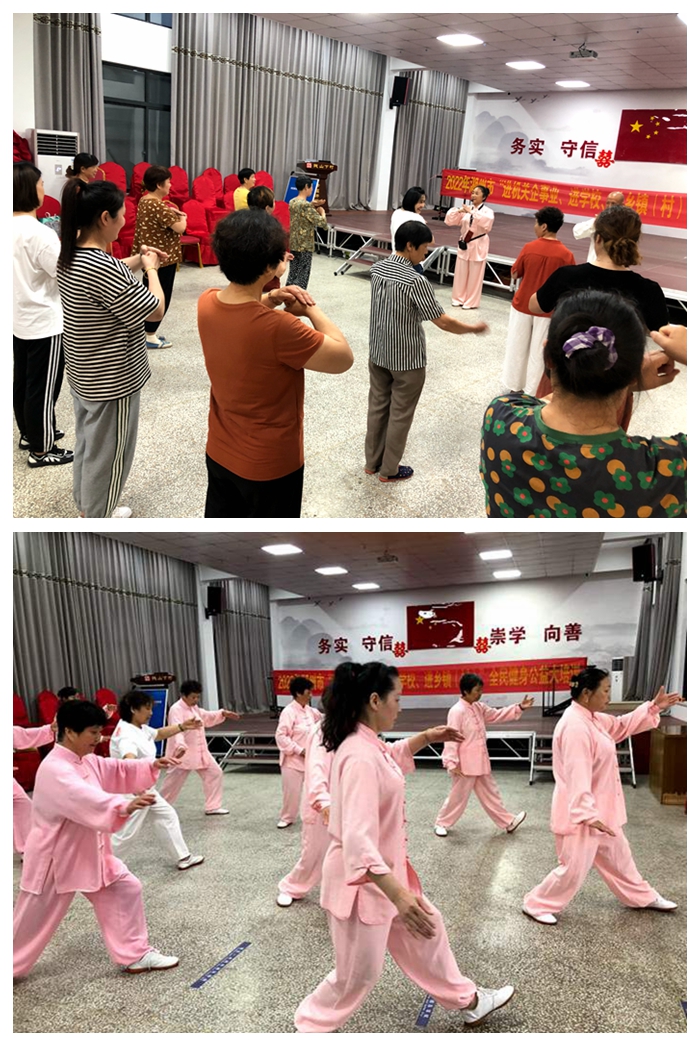 为弘扬中国传统文化,普及全民健身,推进乡村特色社团建设,道场乡社区教育中心联合湖州市吴兴区武协道场乡分会举办全民健身公益培训进村社活动,在道场乡钱山下村文化礼堂开展为期十天的“杨氏太极8式”免费公益培训。