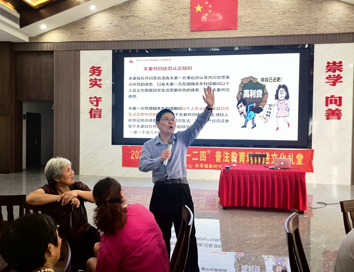 为更好保护中老年人合法权益,提高中老年人的法律保护意识,9月8日下午,和孚成校“一二四”普法教育活动在和孚镇新胜村文化礼堂如期举行,共有128位中老年群众和新胜村村委人员参加。