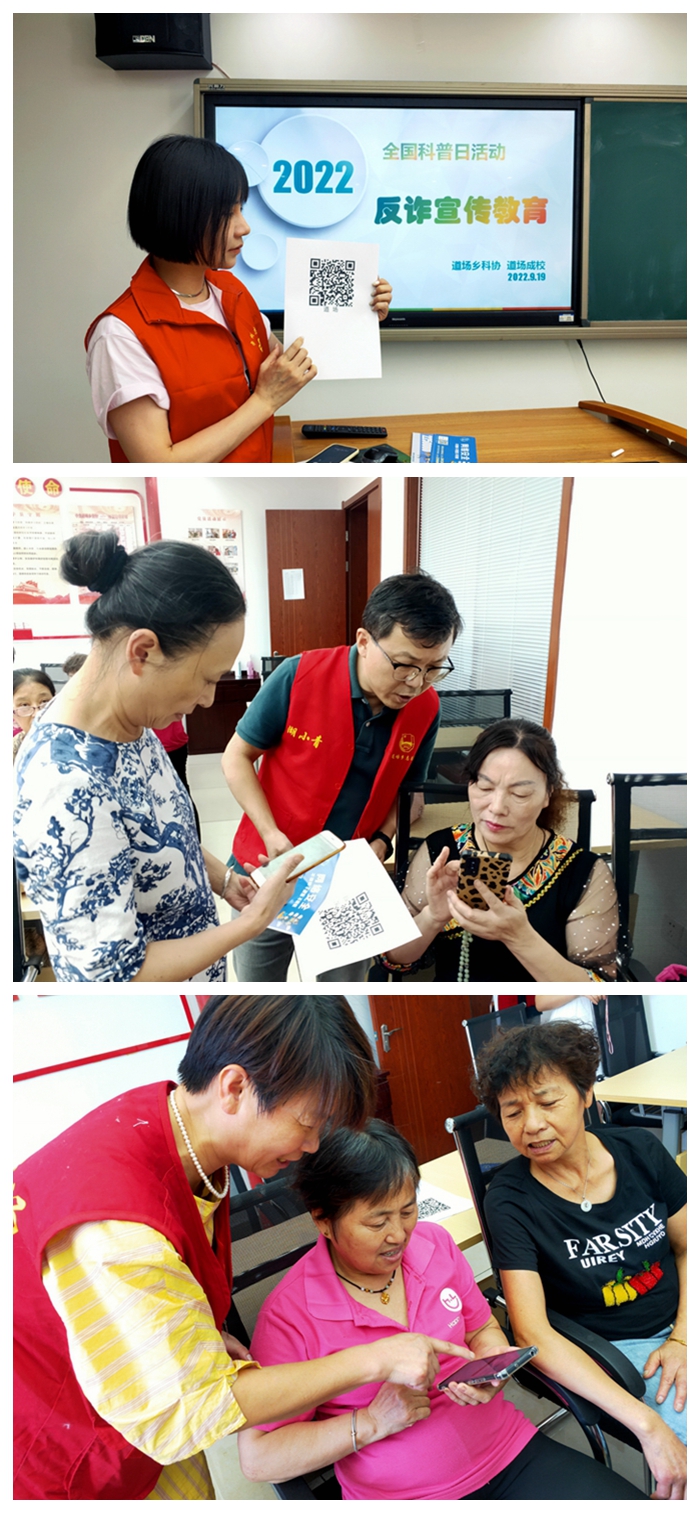 为提高老年人反诈意识,提升反诈宣传力度,9月19日下午,湖州市道场成校、道场乡科协联合开展“2022全国科普日活动-反诈宣传教育”