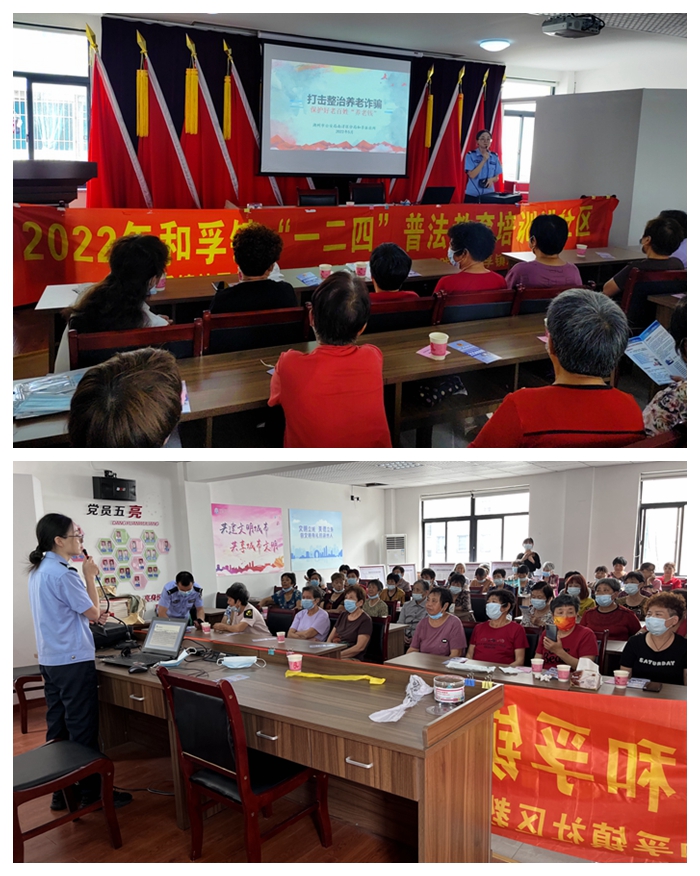 为有效预防和遏制电信网络诈骗多发高发态势,切实增强广大群众的防骗意识,同时为引导广大老年人强化交通安全意识,预防和避免交通事故的发生。9月23日下午,和孚成校应长超社区村委要求,联合和孚镇派出所在长超社区举办“一二四”普法教育活动。