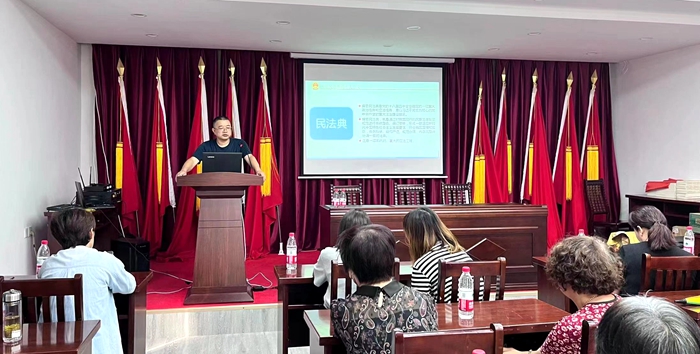活动过程中,社区教育中心金老师向群众宣讲《民法典》的主要内容、亮点解读、诞生经过以及颁布实施的重大意义,并以案例的形式向当地群众重点讲解了《民法典》中物权篇的主要亮点,例如继承权与居住权分离、土地经营权和土地承包权分离、共有部分如何利用、收益的分配方式、担保物权竞存时的顺位规则等与居民日常生活息息相关的条文,让居民真正认识到《民法典》是保护老百姓自身权益的 “社会生活百科全书”。