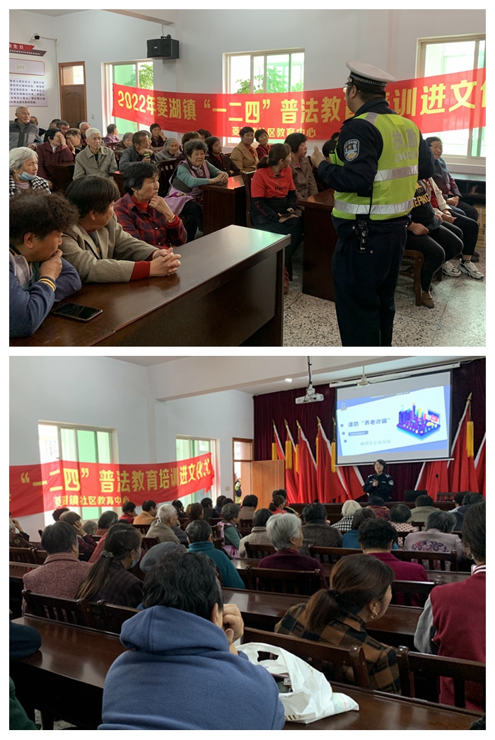 为扎实推进社区普法工作,引导市民树立遵法、学法、守法、用法意识,增强法制观念,保护市民合法权益,促进广大城乡居民素质全面提高,菱湖镇社区教育中心继续深入开展“一二四”普法教育进农村文化礼堂活动。11月4日下午,菱湖镇社区教育中心联合菱湖派出所和菱湖交警中队,在南双林村文化礼堂开展了防范老年人诈骗及交通法安全知识讲座,讲座吸引了不少老年人前来参加。