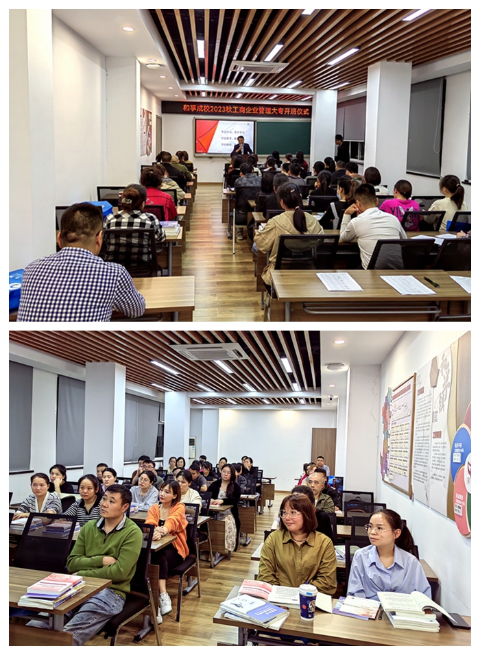 10月24日晚,和孚成校举行2023秋季工商企业管理大专班开班典礼,64名学员报名参加学习。