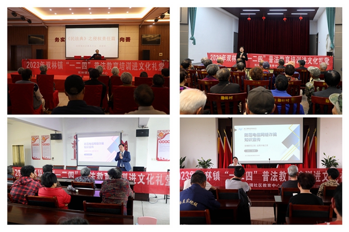 10月25日下午,随着“防范电信网络诈骗法律知识”专题讲座在东双林村的结束,双林镇社区教育中心圆满完成了2023年双林镇“一二四”普法教育培训进文化礼堂项目。