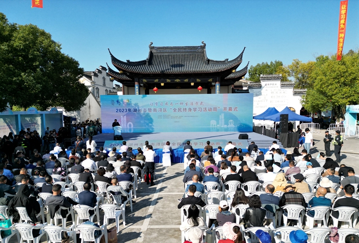 11月7日,以“让学习成为一种生活方式”为主题的2023年湖州市暨南浔区“全民终身学习活动周”开幕式在南浔荻港举行。开幕式由湖州市人民政府主办,湖州市教育局、南浔区人民政府及我校承办。