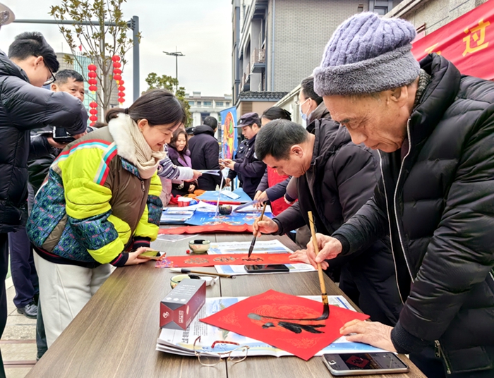 春节将至,为营造欢乐祥和温馨的节日气氛,弘扬中华民族传统文化,1月26日,石淙镇派出所联合南浔农商银行、石淙成校在连心路开展“守住钱袋子 过个幸福年”反诈宣传送春联活动,提升群众防骗意识,在节日里守护好群众的“钱袋子”。