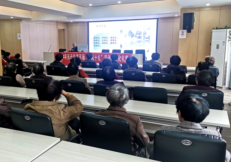 为大力倡导时代新风,努力践行“浙风十礼”,让每一个浙江人都成为文明代言人。4月11日上午,南浔镇社区教育中心开展的“百场‘浙风十礼’活动进文化礼堂”活动走进东迁街道洋南村。