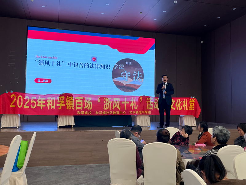 此次讲座是和孚成校深化社区教育、服务乡村振兴的切实举措,也是“浙风十礼”在基层落地生根的生动实践。活动不仅提升了村民的法治素养和文明意识,更营造了“人人践行‘浙风十礼’、事事遵循法治规范”的浓厚氛围,为构建和美乡村、筑牢基层善治根基提供了有力的文化支撑和法治保障。