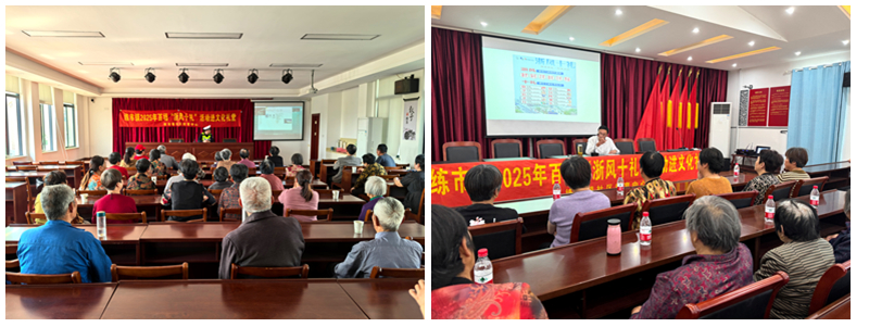 自今年3月以来,练市镇社区教育中心联合辖区各村社开展的2025年度“浙风十礼”进文化礼堂系列活动圆满完成。活动紧扣南浔区教育局相关工作要求,通过精准对接需求、多元师资授课、细化活动细节,累计开展宣讲20场,吸引1278名村社居民参与,在全镇营造出文明有礼、和谐向善的浓厚氛围。